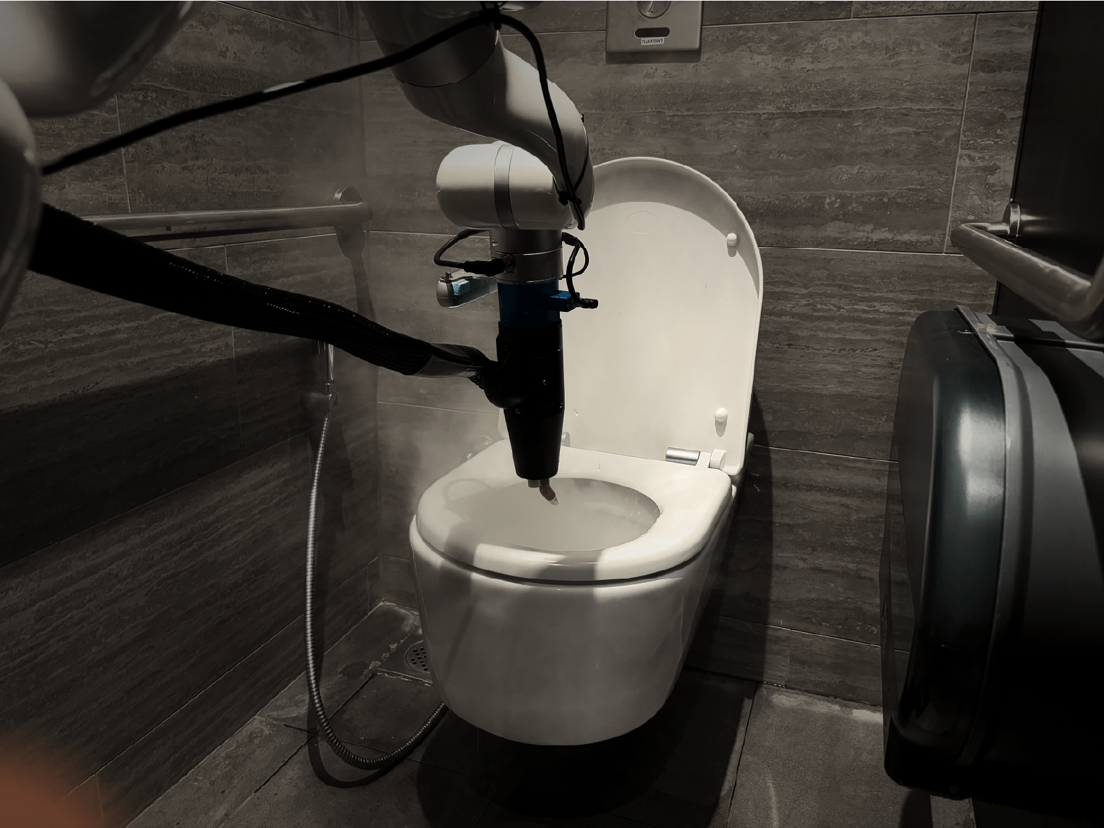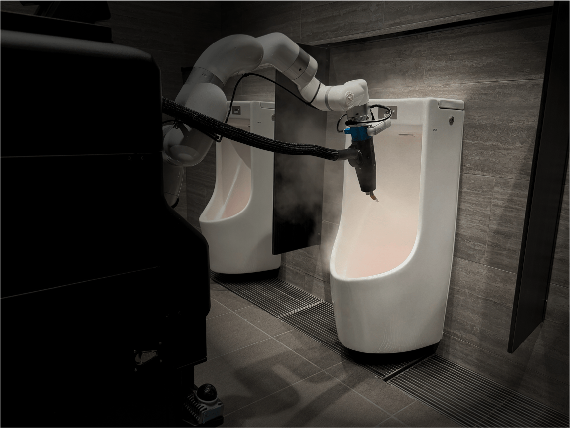Abluo delivers high-performance, hygienic cleaning across toilet bowls, urinals, sinks, and floors—fully autonomously.